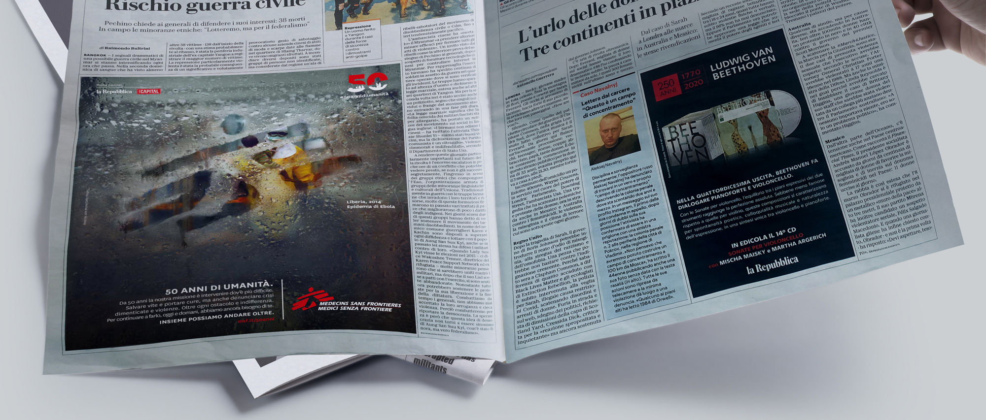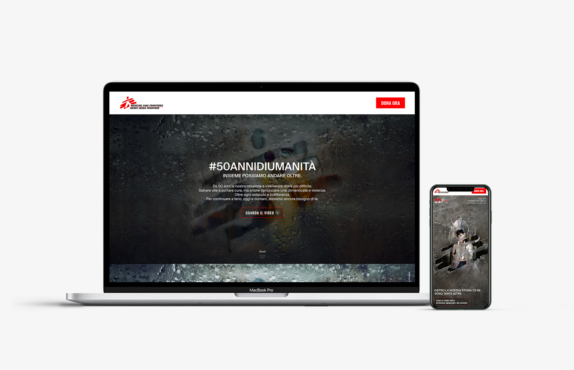 Accompanied by the signature “50 years of Humanity” the campaign celebrates the commitment of humanitarian workers in every corner of the world, underlining, at the same time, the mission of “going beyond” that has always guided Doctors Without Borders.