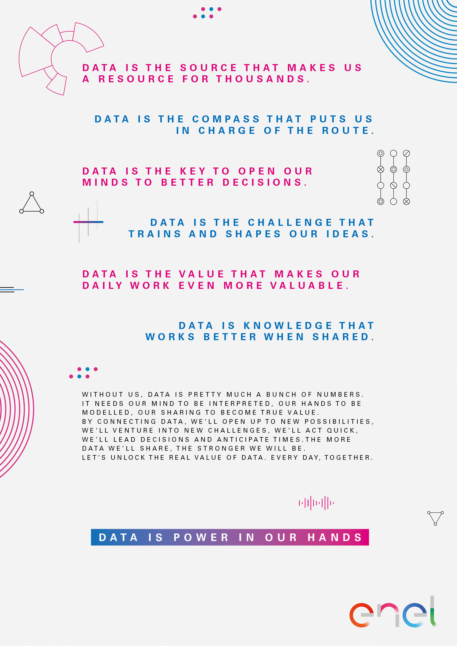 Enel employees work with data every day, but they weren’t fully aware of its importance. After all, how can you acknowledge your most useful tool if everything you see is a bunch of numbers?