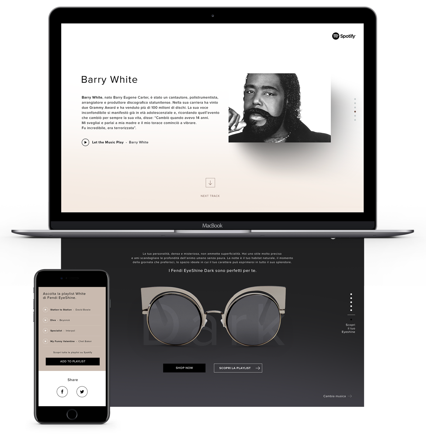 Social CampaignCreating traffic on the social e-commerce, fostering the sharing on social networks, and communicating the positioning of Fendi EyeShine as pure expression of modernity and femininity are the targets that have been met thanks to an amusing and challenging interactive dynamics. |