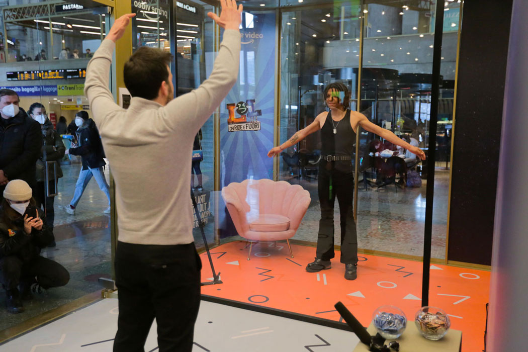 At the Central Station in Milan, we started the challenge: a few minutes for anyone who wanted to try and make some of the most serious people in Italy laugh.