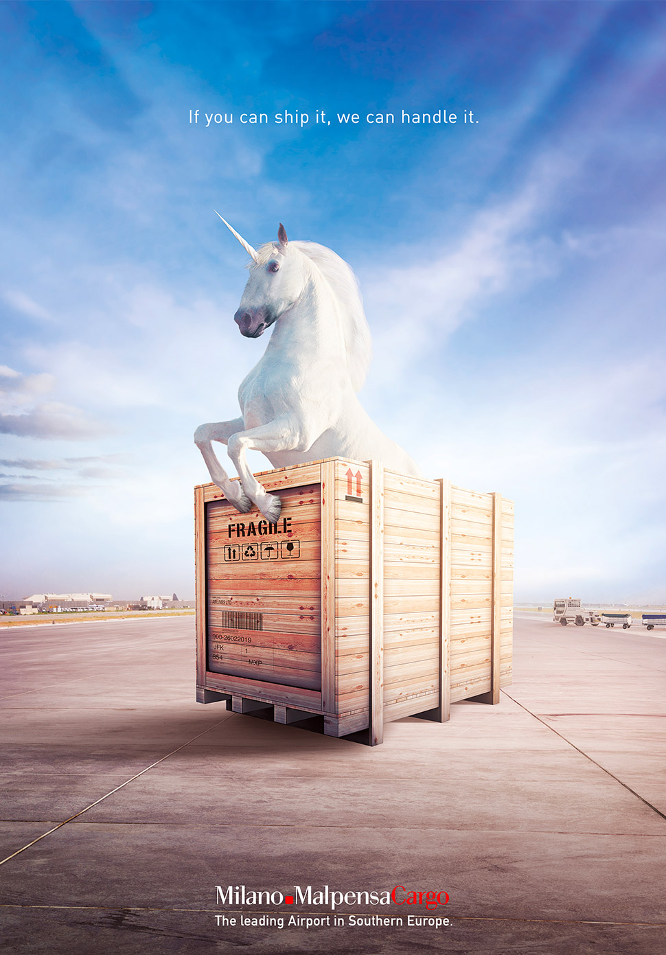 Cargo City is the leading hub for imports and exports in Italy, so we wanted to stress, in a humorous way, that anything can be transported at Malpensa. Absolutely everything.
