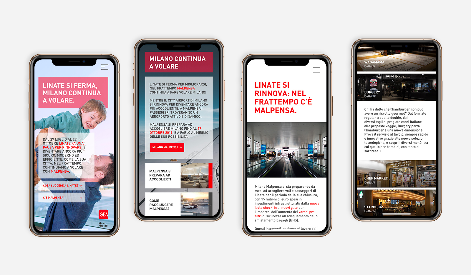 For the Linate closure, we produced a campaign divided into the key topics that the renovated airport can offer travellers.