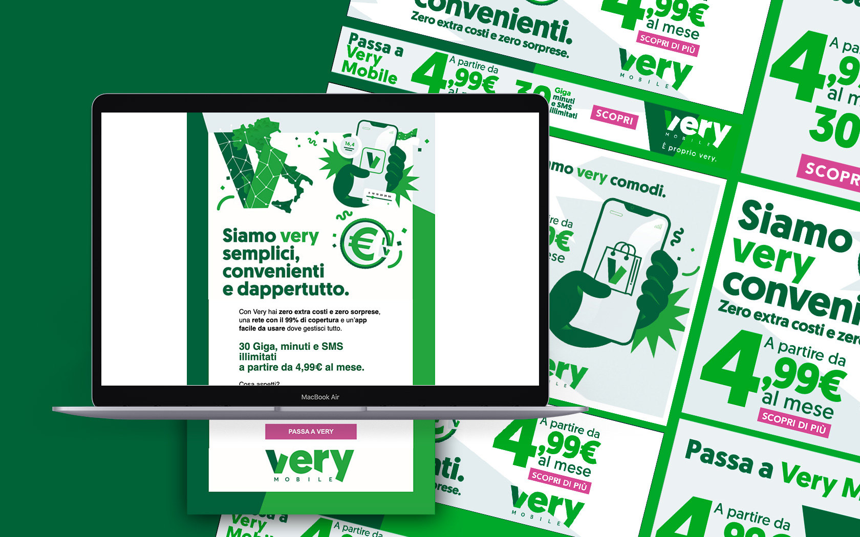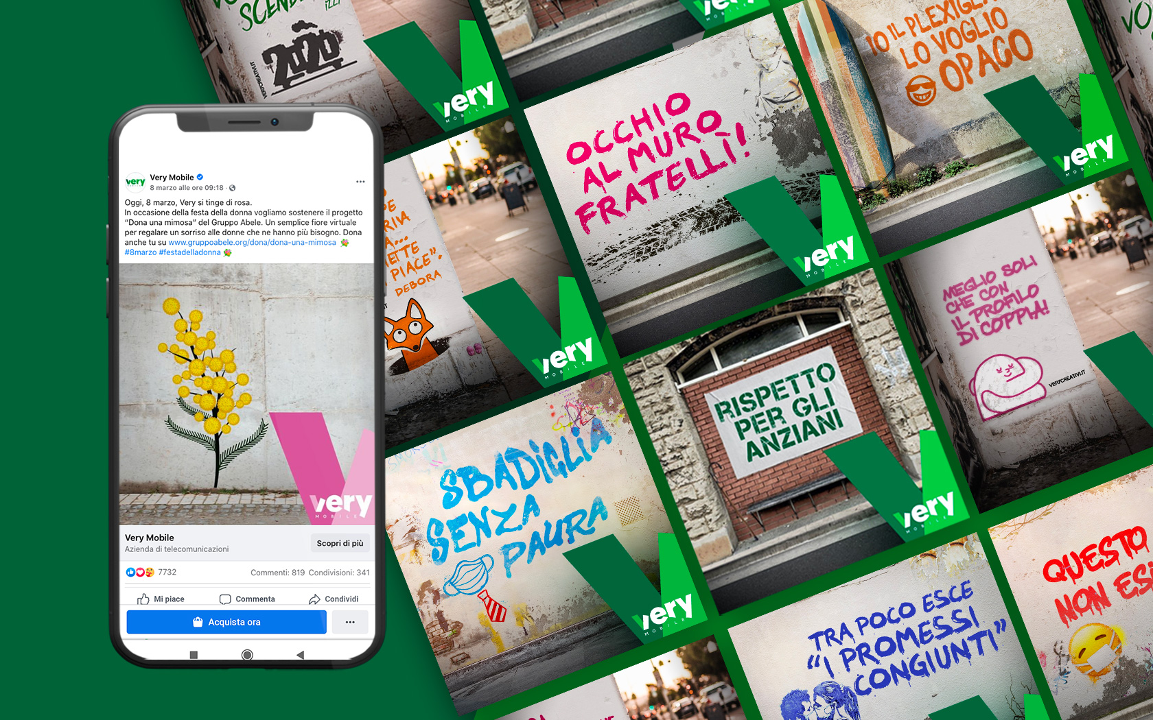 After creating Very Mobile, we thought about a disruptive campaign to introduce the brand to all the Italians. The Telco world is one of the fiercest, we are overwhelmed by all types of media. For this reason, we had to use a surprising language.